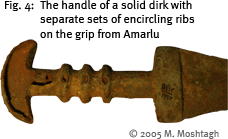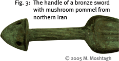 and illegal digs in southwestern areas, such as Luristan, have revealed a tremendous number and variety of bronze weaponry, such as bronze daggers and swords, and some pieces of armor. This book exhibits a number of selected bronze daggers and swords that were excavated by Dr. Ezat Negahban in Marlik, as well as an array of bronze weapons from Luristan that is currently kept in the National Museum of Iran in Tehran. These bronze weapon