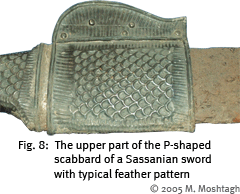Sassanian period examines the development of daggers and swords during this final period of Zoroastrian hegemony in Iran. Archeological examples of Sassanian swords with P-shaped scabbards from the National Museum of Iran are examined in detail. A number of variants of this type of sword are shown in the book, and for the first time, archeological examples of early Sassanian swords, most probably suspended via a scabbard slide system, are also shown. One of the hallmarks of the book is a thorough analysis of the process of making crucible steel. Based on historical manuals, different processes are introduced and described in detail. Marvelous patterns of "Phulad-e Johardar" (crucible steel) are shown. Based on historical treasties, different classifications of swords are discussed in detail. For the first time, the classification of swords by Omar Khayyam Neishaburi is also included. One of the major tenets of this book is to analyze each object in its related c